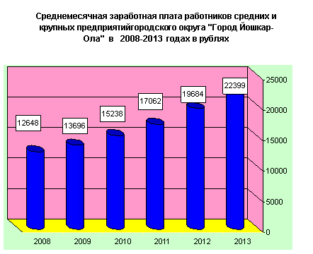 Средняя номинальная заработная плата, Важнейшим итогом развития социальных процессов является устойчивый рост денежных доходов населения. В городском округе «Город Йошкар-Ола» номинально начисленная заработная плата работников средних и крупных предприятий за январь-декабрь 2013 года составила 22398,8 руб. По сравнению с аналогичным периодом 2012 года рост составил 13,3 %. В разрезе видов экономической деятельности среднемесячная начисленная заработная плата характеризуется следующими данными: в январе-декабре 2013 года в сельском хозяйстве она составила – 14159,4 руб. (113,3 % к уровню 2012 года), в обрабатывающих производствах – 23354,5 руб. (111,8%), в строительстве – 22694,1 руб. (105,6 %), в финансовой деятельности – 35663,5 руб. (106,6%), в образовании – 16956,1 руб. (123,6%), в здравоохранении и предоставлении социальных услуг – 15973,3 руб. (126,1 %). По данным организаций городского округа «Город Йошкар-Ола» по состоянию на 1 января 2013г. просроченная задолженность по выплате заработной платы в городском округе отсутствует. В администрации городского округа «Город «Йошкар-Ола» в течение 8 лет осуществляет свою деятельность комиссия по вопросам укрепления дисциплины оплаты труда и уплаты социальных страховых взносов на территории городского округа «Город Йошкар-Ола». Основным направлением деятельности комиссии является рассмотрение вопросов своевременной выплаты заработной платы, повышение уровня оплаты труда и уплаты страховых взносов по обязательному социальному страхованию. Кроме того, особый упор делается на факты выплаты организациями и индивидуальными предпринимателями работникам заработной платы ниже прожиточного минимума. В 2013 году в администрации городского округа «Город Йошкар-Ола» проведены 10 заседаний, на которых заслушивались представители 77 проблемных предприятий. По результатам работы комиссии в 2013 году собираемость средств по обязательному пенсионному страхованию (ОПС) и отчислениям в фонды обязательного медицинского страхования (ОМС) достигла 76,3% или в суммарном выражении 134,8 млн. руб. в том числе по ОПС- 75,1 %, по ОМС - 82,5 %. Для сравнения в 2011 году поступило - 56,2 % от суммы общей задолженности, в 2012 году- 47,1 %. Сумма задолженности за страхователями, рассмотренными на комиссии по обязательному социальному страхованию на случай временной нетрудоспособности и в связи с материнством за 2013 год составила 4411,04 тыс.руб. Перечислено страховых взносов - 3109,13 тыс.руб или 70% от суммы задолженности. Сумма перечисленных страховых взносов по обязательному социальному страхованию от несчастных случаев на производстве и профессиональных заболеваний за 2013 год составила 1871,20 тыс.руб или 75% от суммы задолженности. В 2013 году перечислен налог на доходы физических лиц в сумме 23147,3 тыс. руб. (в 2011 г. - 8913 тыс. руб., в 2012 году - 15302 тыс. руб.).