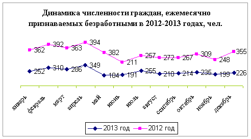 Наметившаяся стабилизация городского рынка труда в предыдущие годы сохранилась и в 2013 году. Оздоровление положения на предприятиях, создание инвесторами новых рабочих мест позволило снизить численность безработных и уровень регистрируемой безработицы. В 2013 году в центр занятости за предоставлением государственных услуг в области содействия занятости обратилось 14059 человек, из них 6111 человек - за содействием в поиске подходящей работы (в том числе 4997 человек - незанятые трудовой деятельностью граждане). По сравнению с соответствующим периодом 2012 года число получателей госуслуг уменьшилось на 3608человек или на 20,4 %, численность обратившихся в поисках подходящей работы уменьшилась на 1025 человек или на 14,4 %. В течение января – декабря 2013 года в установленном порядке было зарегистрировано безработными 2913 человек, что на 20,8 % меньше, чем в соответствующем периоде 2012 года (3678 чел.). Снято с учёта за год было 3303 безработных. В целом по городу Йошкар-Оле уровень зарегистрированной безработицы с января по декабрь 2013 года снизился на 0,2% и на начало 2014 года составил 0,7 %. Коэффициент напряженности на рынке труда сохранился на уровне предыдущего года и составил 0,4 незанятых граждан на одно свободное рабочее место. Анализ профессионально-квалификационной структуры безработных и профессионального среза вакансий свидетельствует о дисбалансе спроса и предложения рабочей силы на рынке труда по профессиональному, половозрастному признакам, уровню запрашиваемой и предлагаемой заработной платы. Как и в предыдущие годы, в составе безработных граждан в 2013 году сохраняется большая доля граждан, испытывающих трудности в поиске работы: женщин – 62,4 %, молодежи - 19,1 %, инвалидов – 16,2%; граждан, имеющих длительный (более года) перерыв в работе – 10,9 %. Каждый восьмой, состоящий на учёте безработный, уволен в связи с ликвидацией организации либо сокращением численности работников. Численность повторно обратившихся в Центр занятости составила более 40% от общего числа обратившихся. На конец 2013 года наибольшая потребность в рабочих кадрах на предприятиях и организациях городского округа ощущалась в водителях автомобилей, станочниках деревообрабатывающих станков, электрогазосварщиках, столярах-станочниках, слесарях-ремонтниках, токарях, рамщиках, каменщиках, плотниках, отделочниках, слесарях-сантехниках, барменах, кондитерах, пекарях, поварах, официантах, продавцах, швеях. Большая потребность имеется в работниках неквалифицированного труда (подсобных рабочих, кухонных рабочих, разнорабочих, уборщиках, санитарках). Несмотря на стабилизацию ситуации на рынке труда процессы высвобождения работников на предприятиях и организациях городского округа продолжаются. Численность работников, предполагаемых к увольнению в связи с ликвидацией организаций либо сокращением численности, в 2013 году, по сведениям предприятий, составила 732 человека, из них было уволено 678 человек или 92,6 %. Из числа уволенных работников по этой причине трудоустроены 327 человек, в т.ч. в той же организации 298 человек, на пенсию по возрасту направлены 44 человека. В целях снижения напряжённости на рынке труда велась работа по выполнению Программы дополнительных мероприятий, направленных на снижение напряженности на рынке труда РМЭ. Профессиональное обучение из ищущих работу гражда